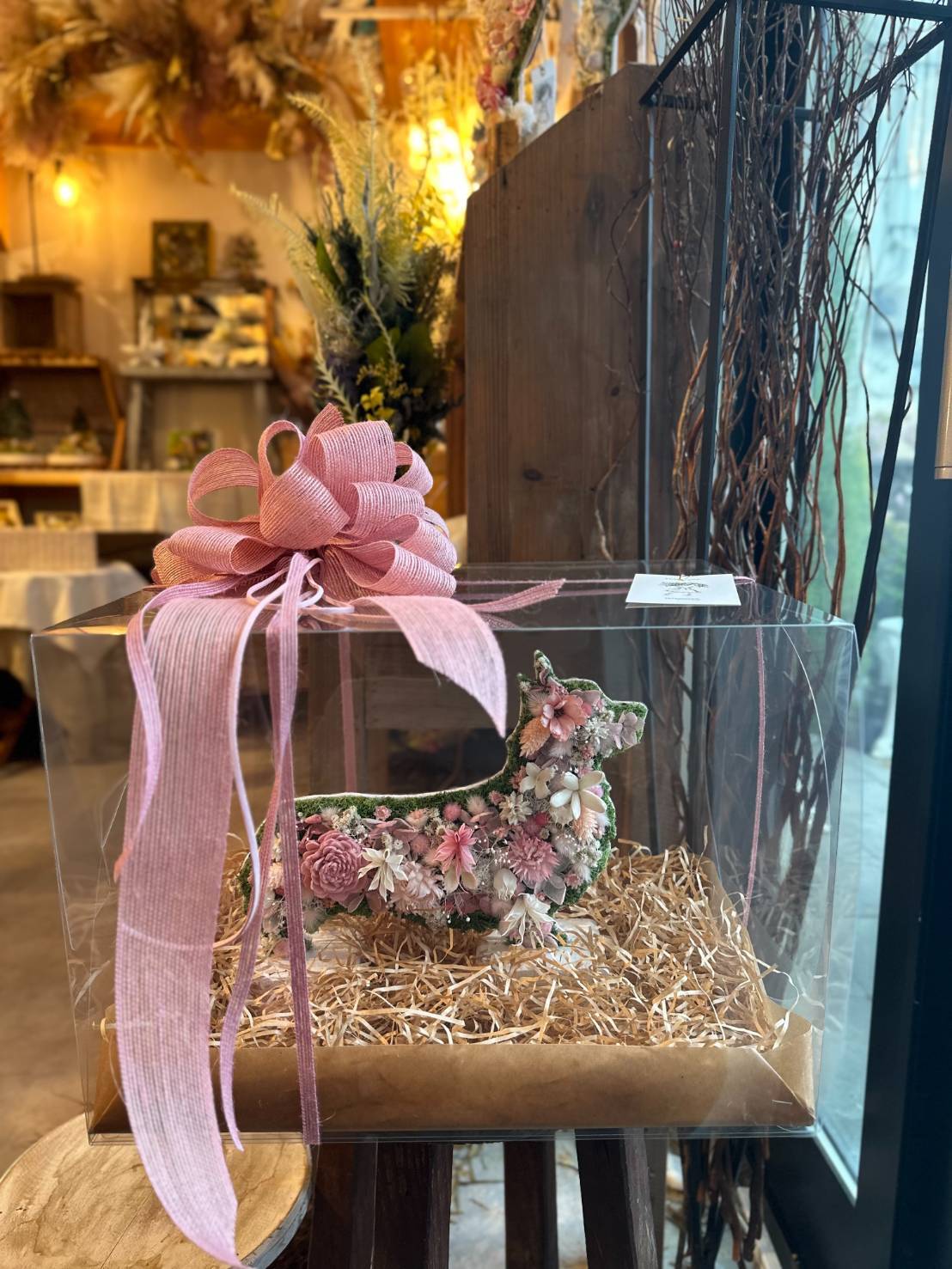 dry flowerで作ったコーギーの置き物(ケース付き)になります.