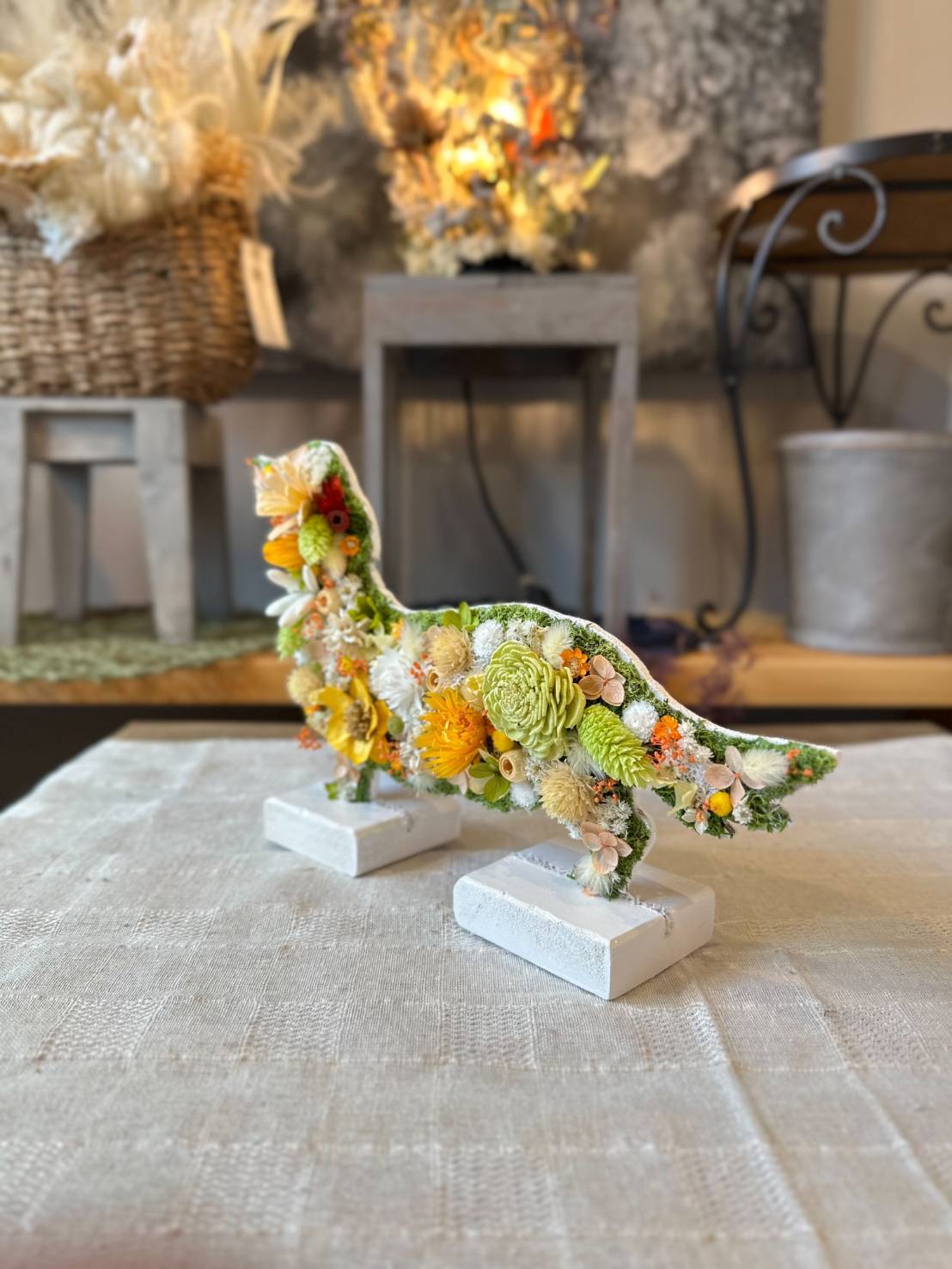 dry flowerで作ったダックスフンドの置き物になります.