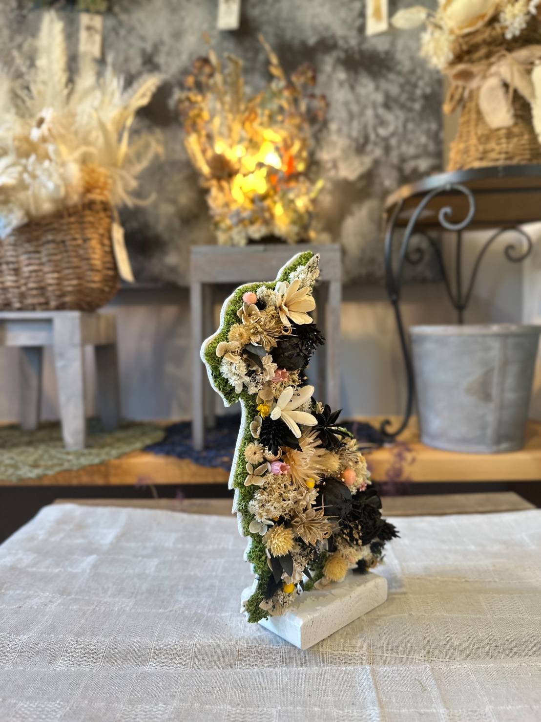 dry flowerで作ったヨークシャーテリアの置き物になります.