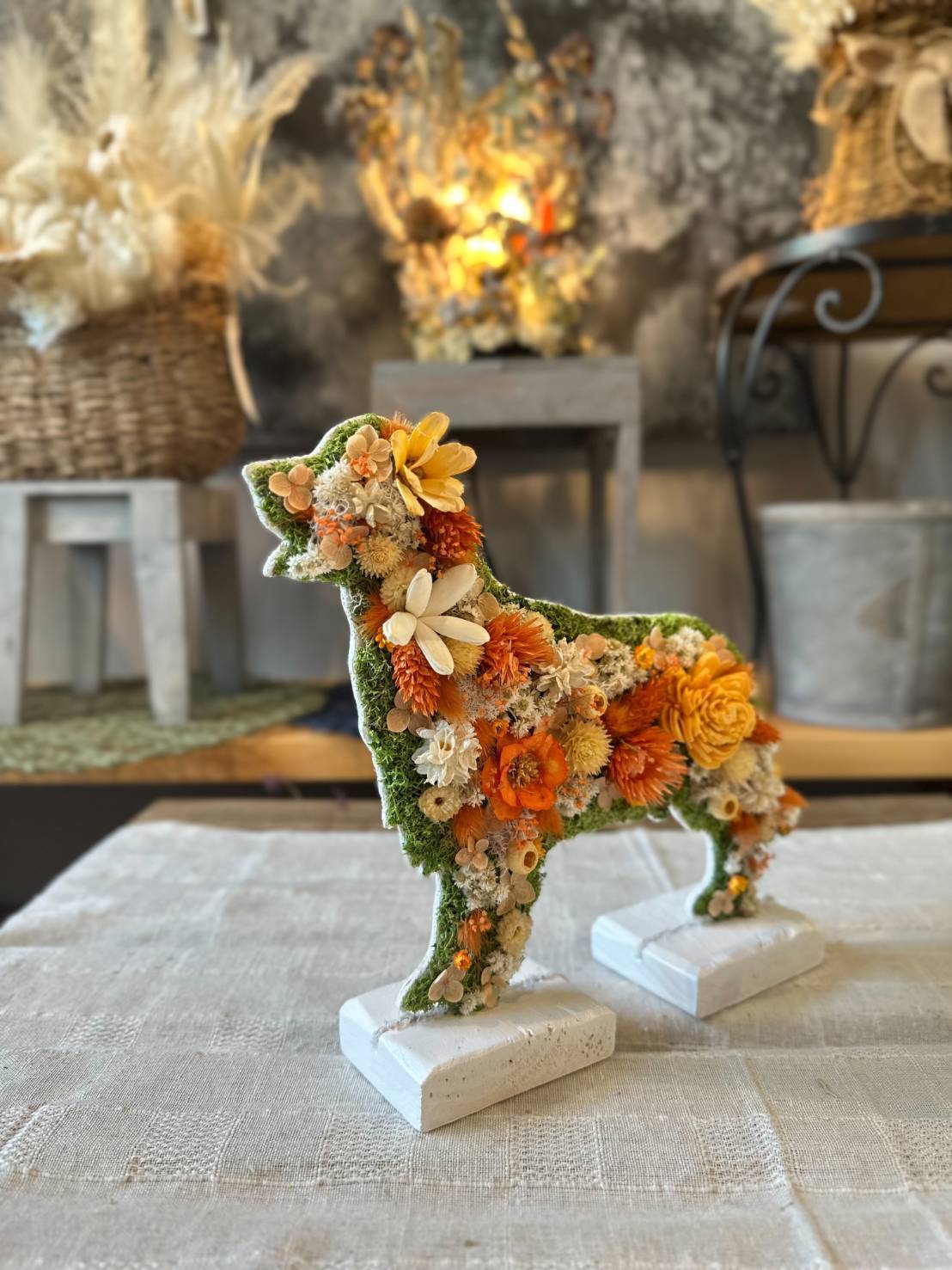 dry flowerで作ったゴールデンレトリバーの置き物になります.