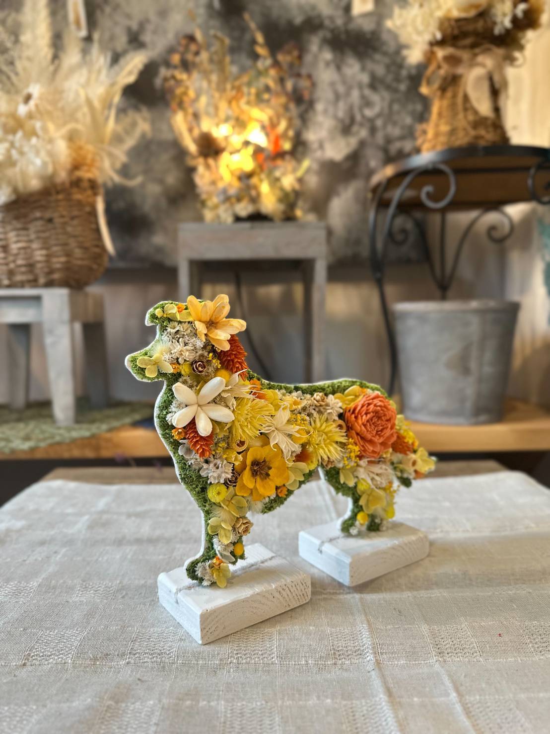 dry flowerで作ったボーダーコリーの置き物になります.