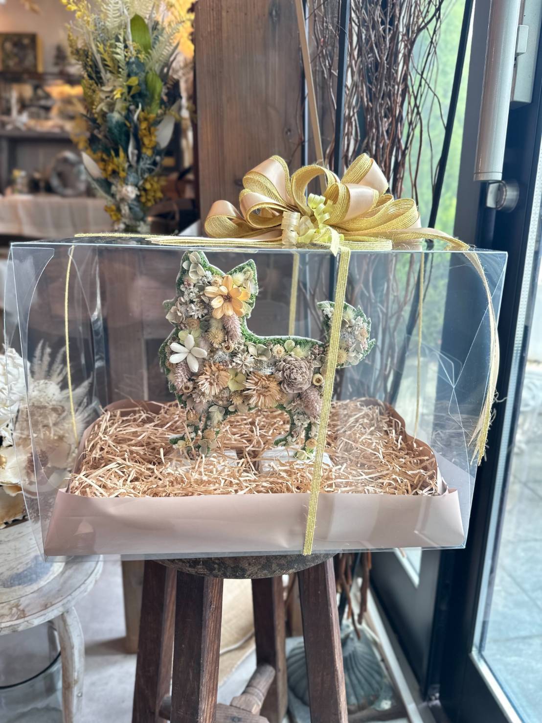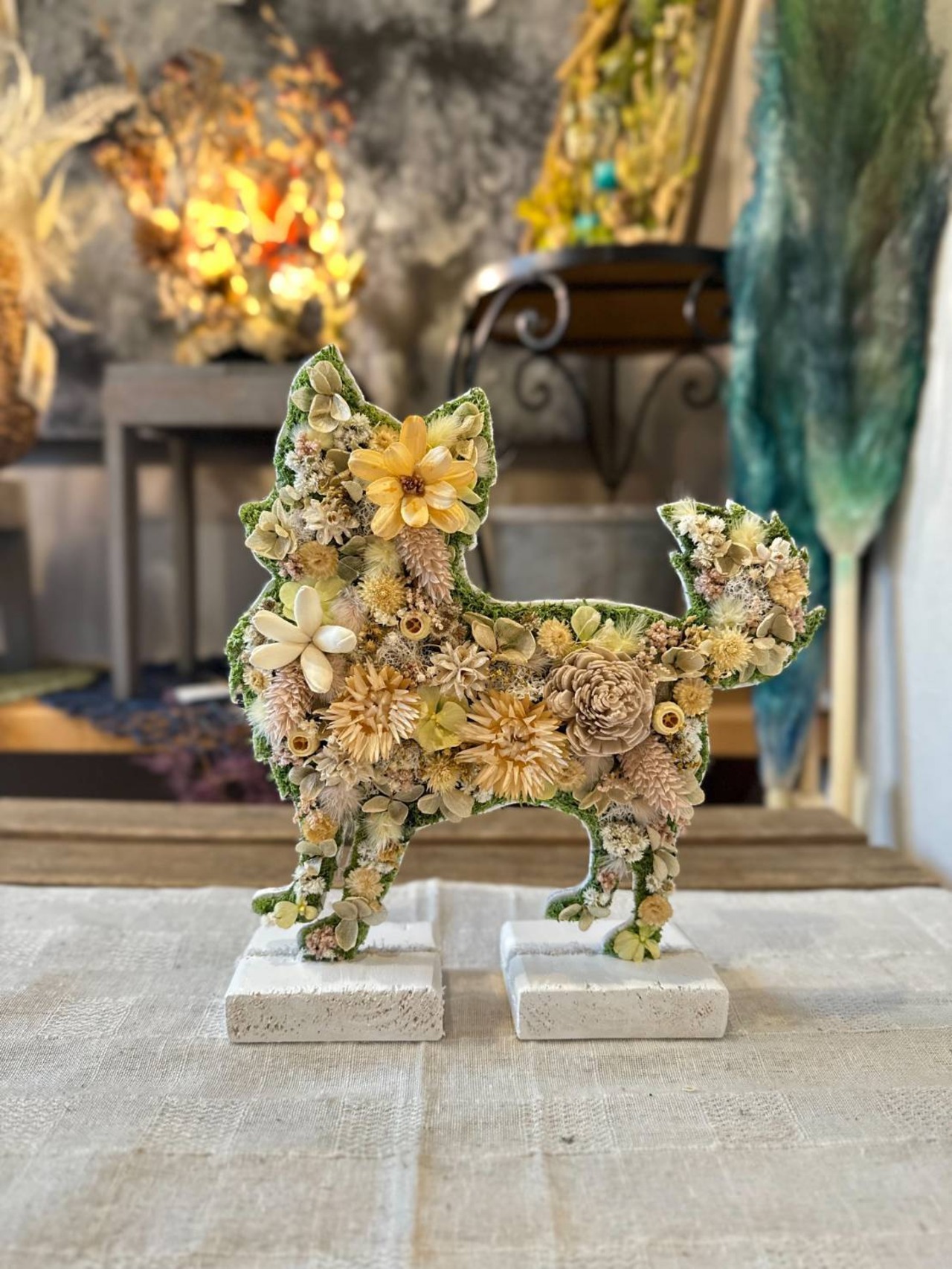 dry flowerで作ったロングコートチワワの置き物になります.