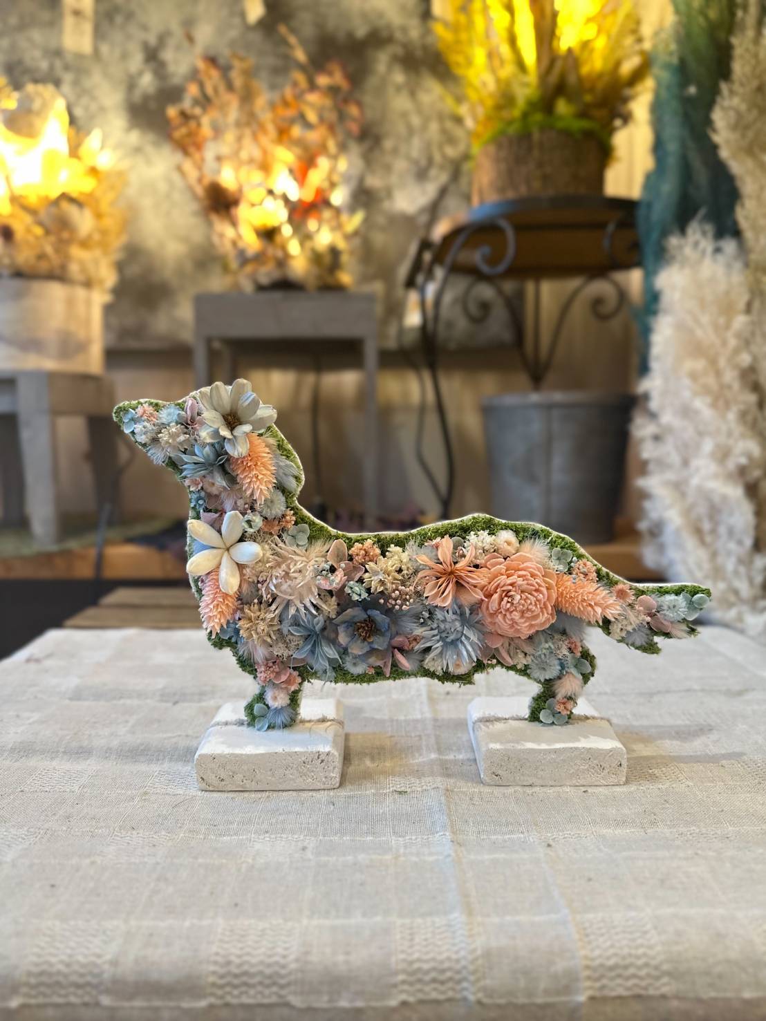 dry flowerで作ったダックスフンド、フレンチブルドッグの置き物になります.