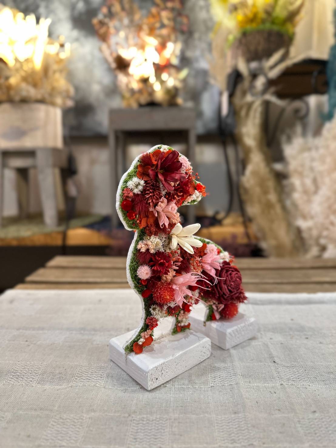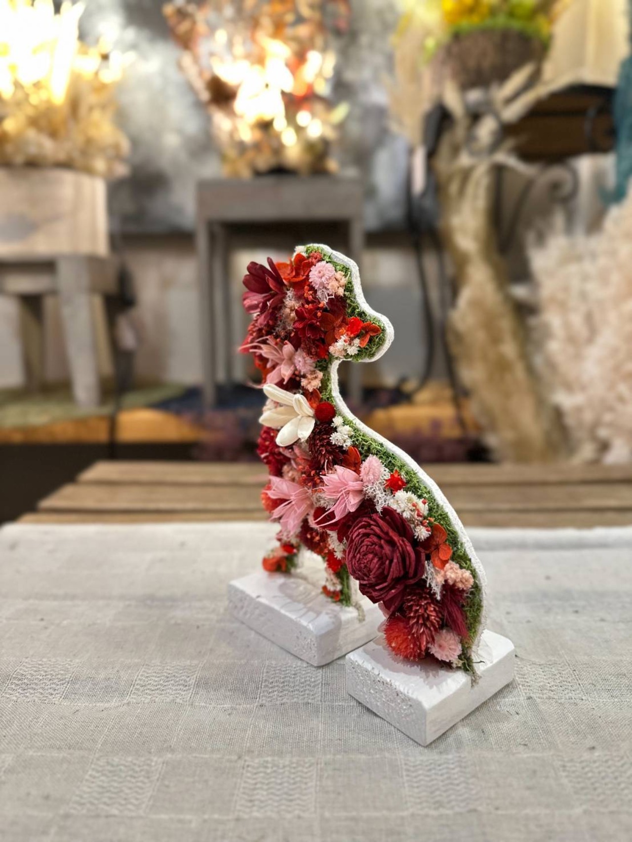 dry flowerで作ったミニチュアダックスフンドの置き物になります.