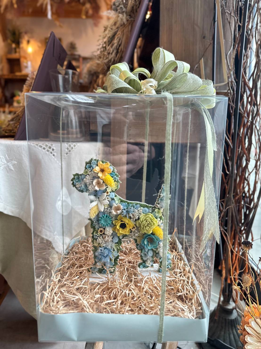 dry flowerで作ったプードルシュナウザーの置き物になります.