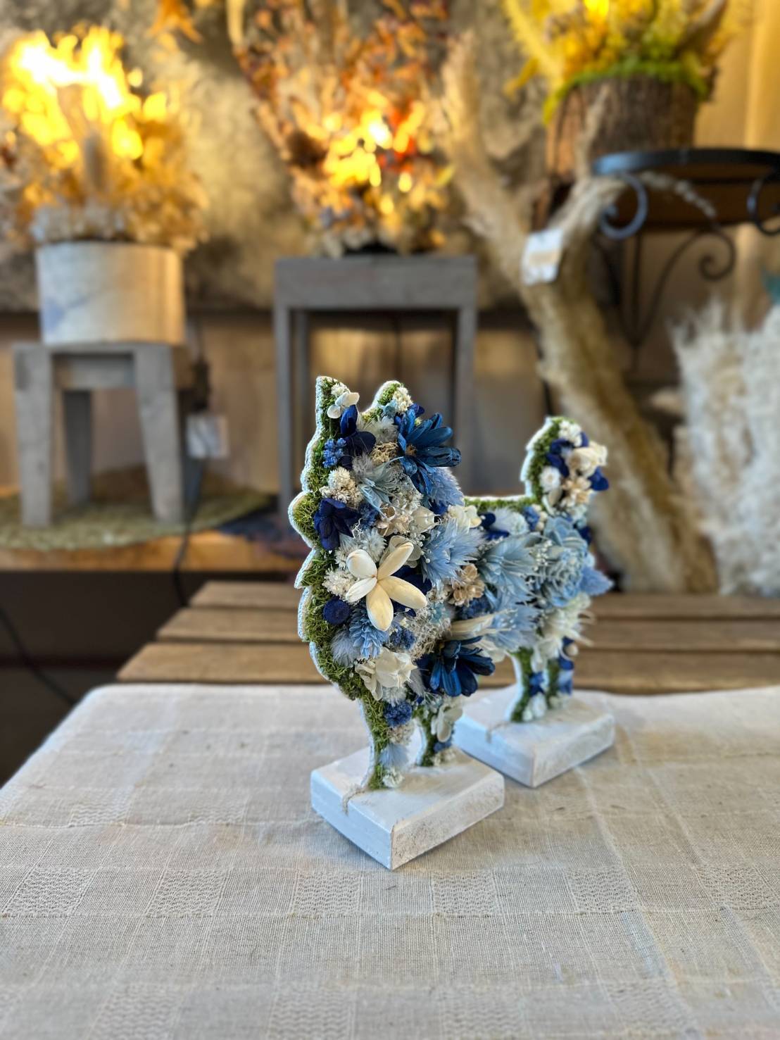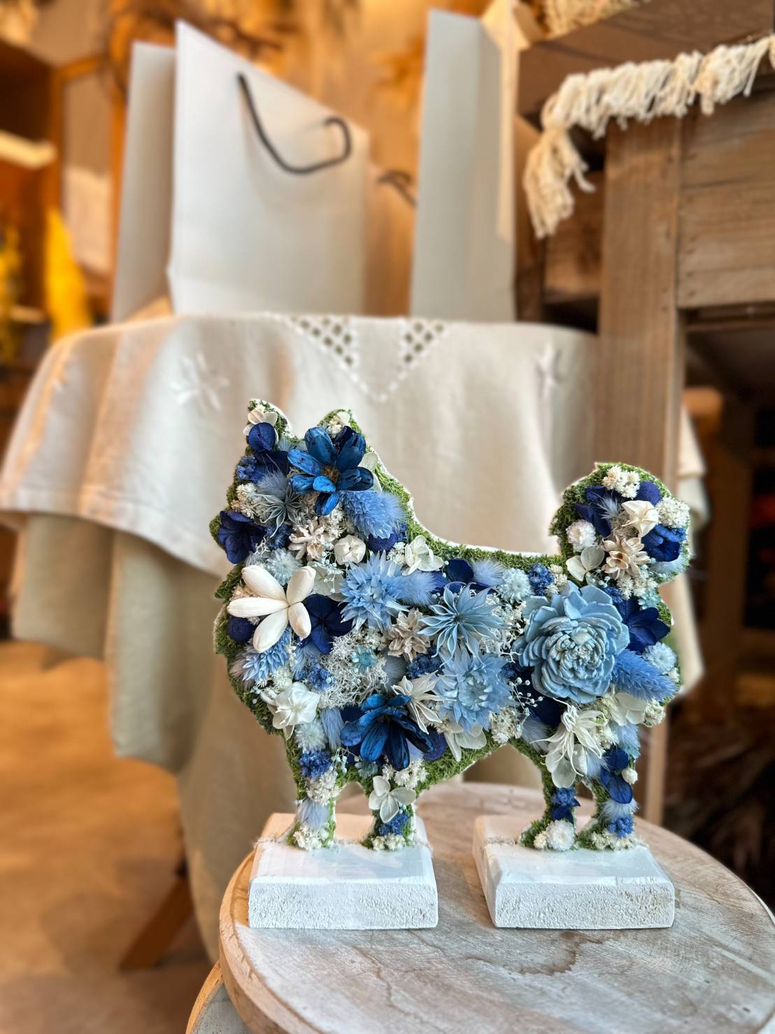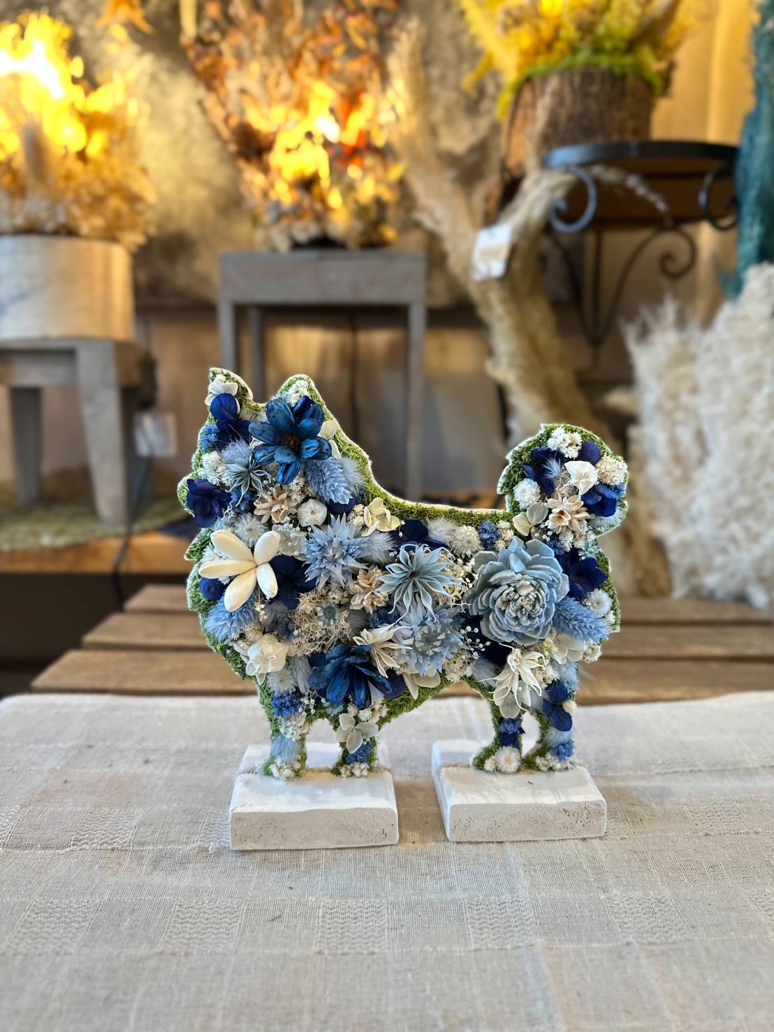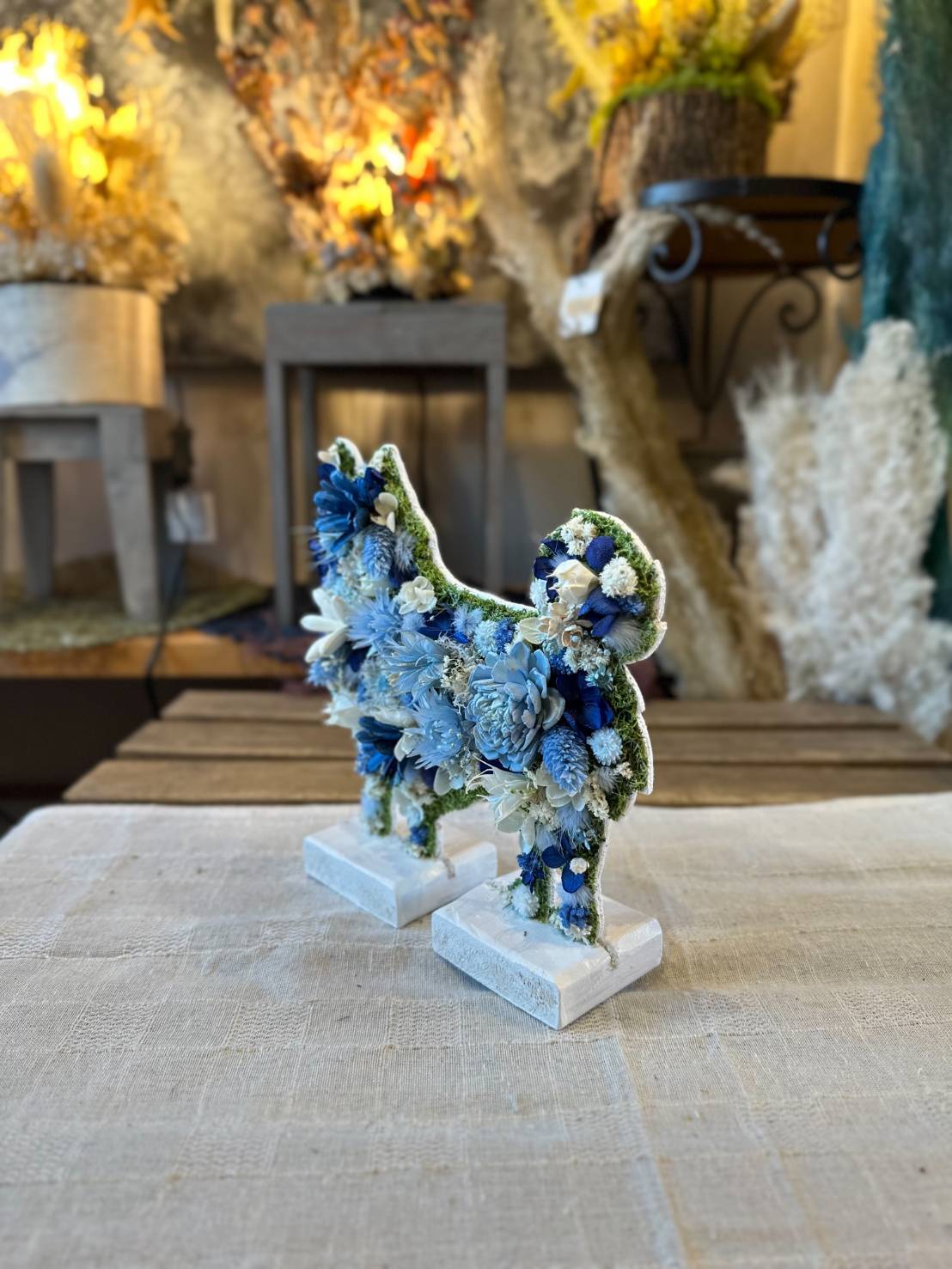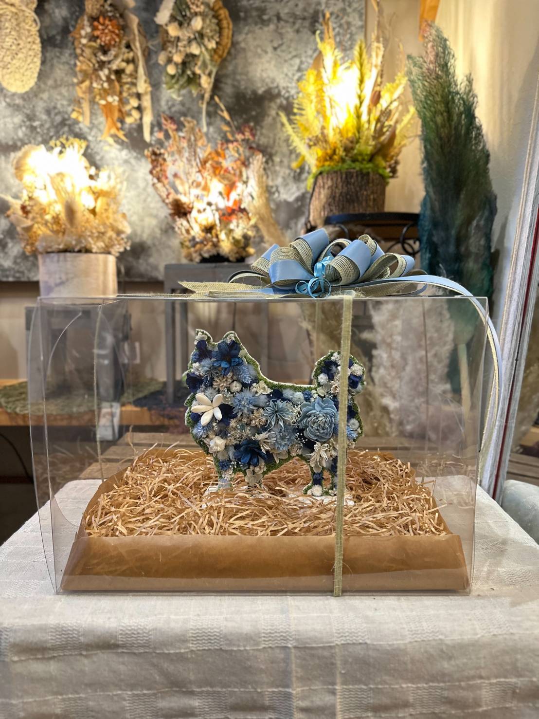 dry flowerで作ったロングコートチワワの置き物になります.