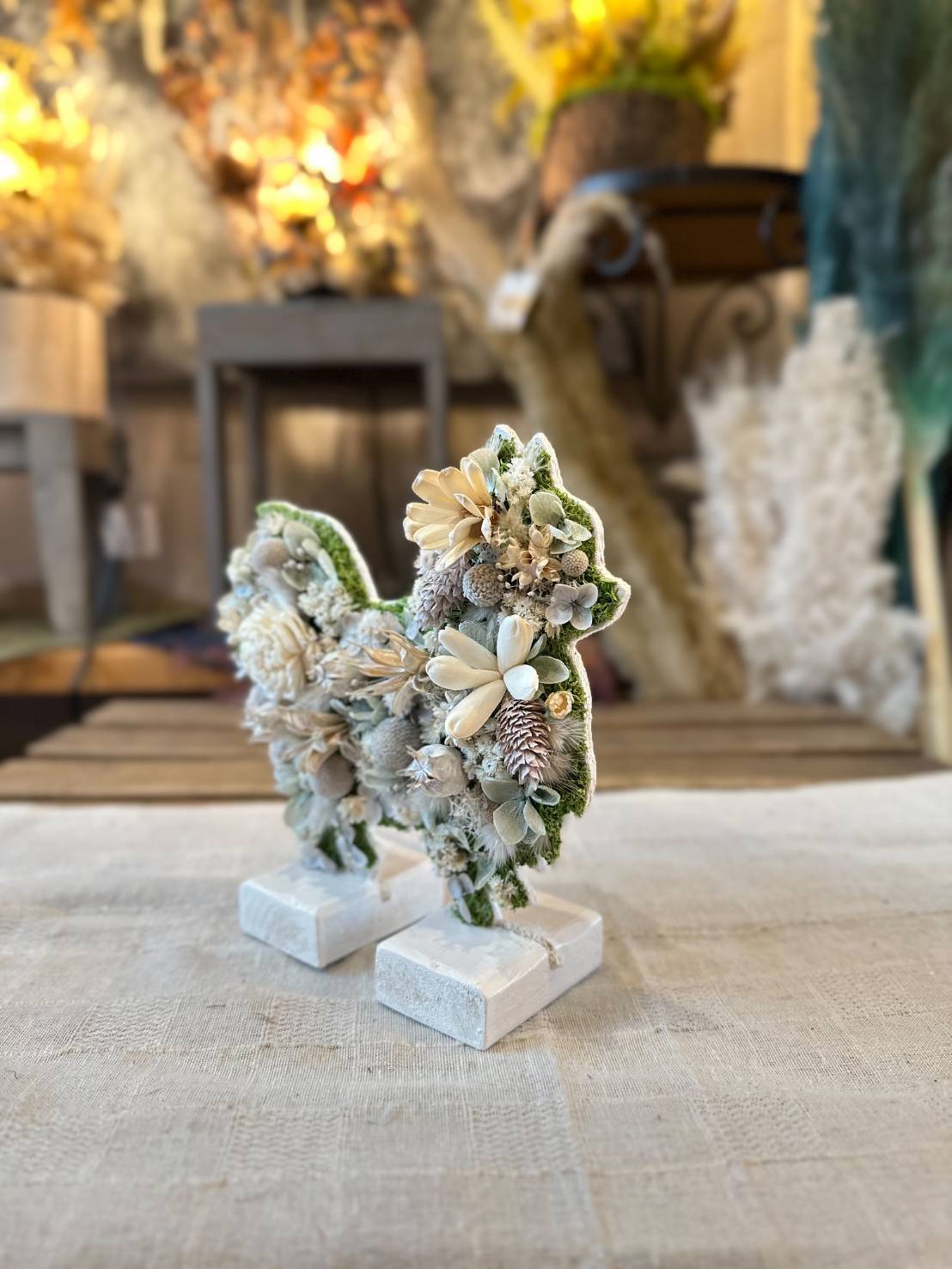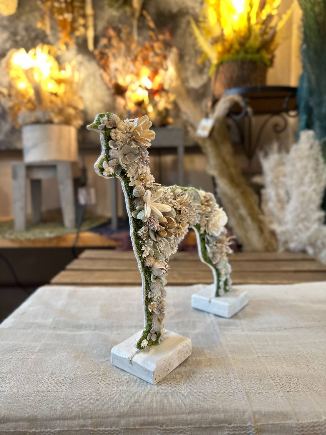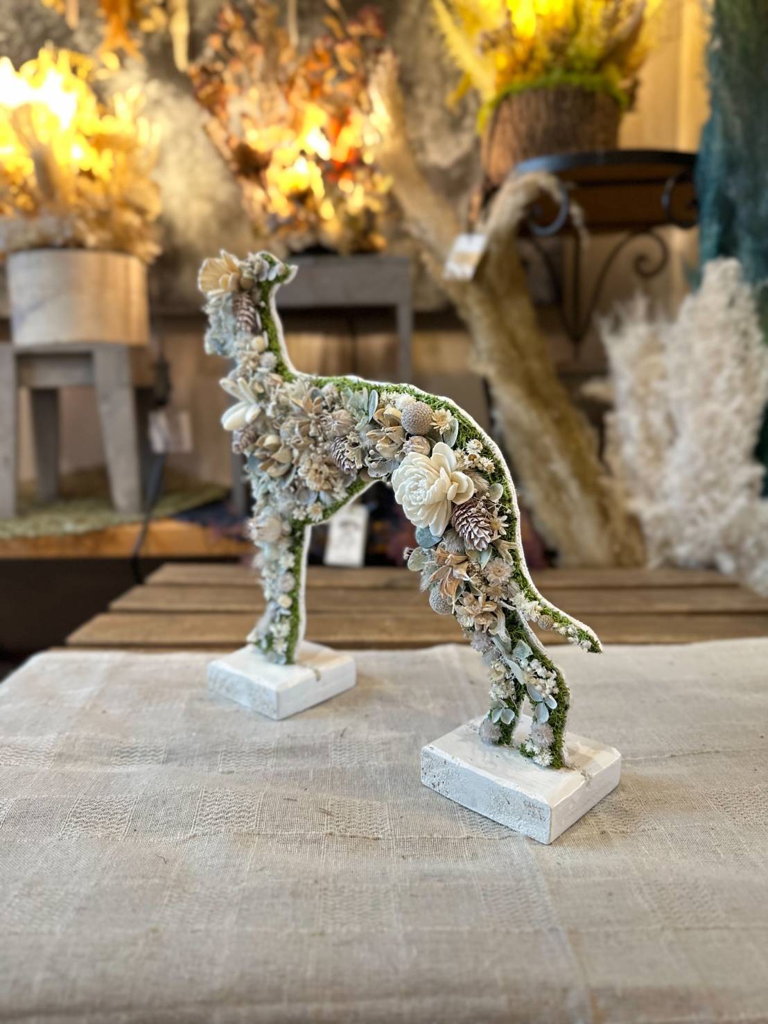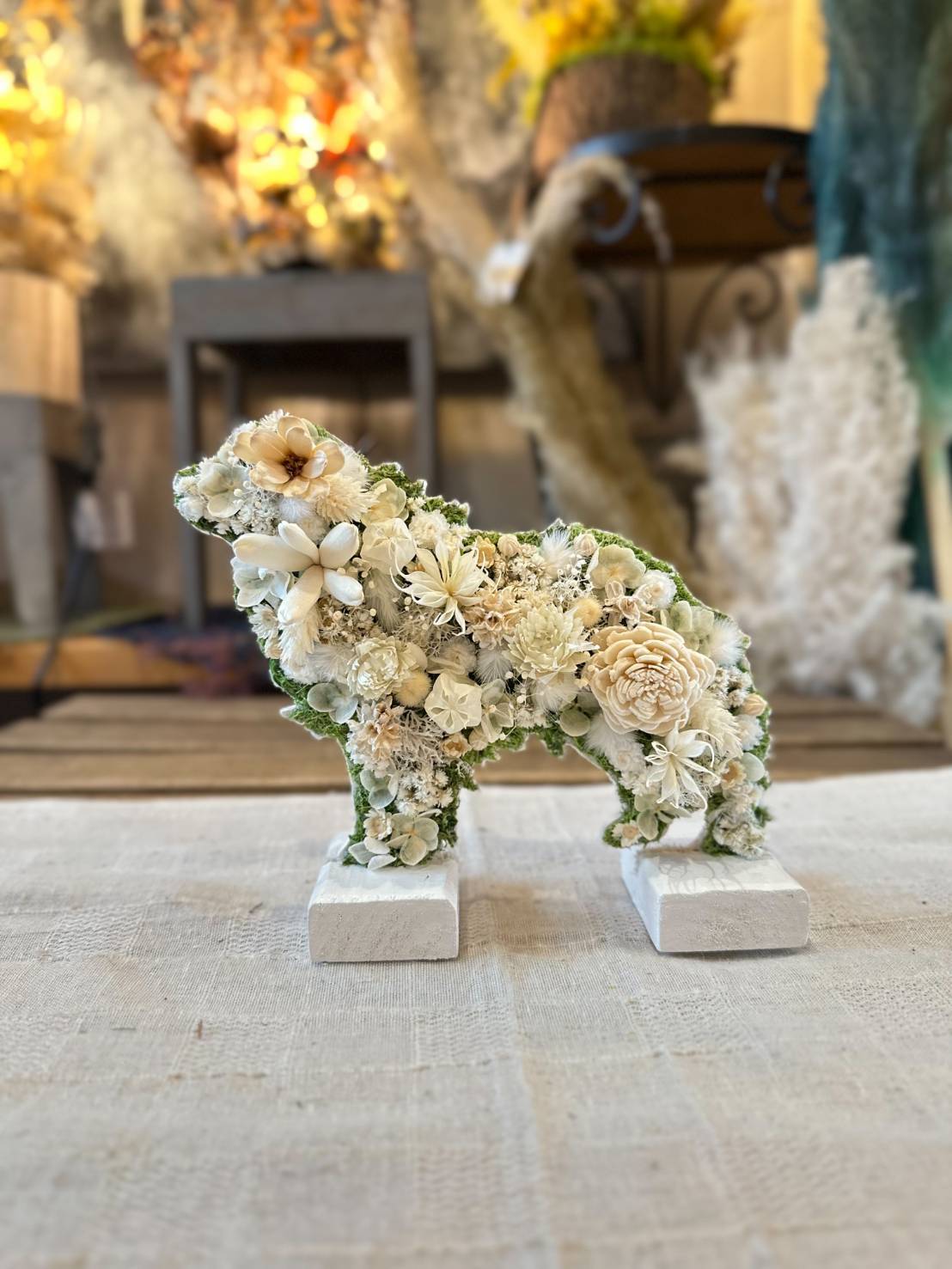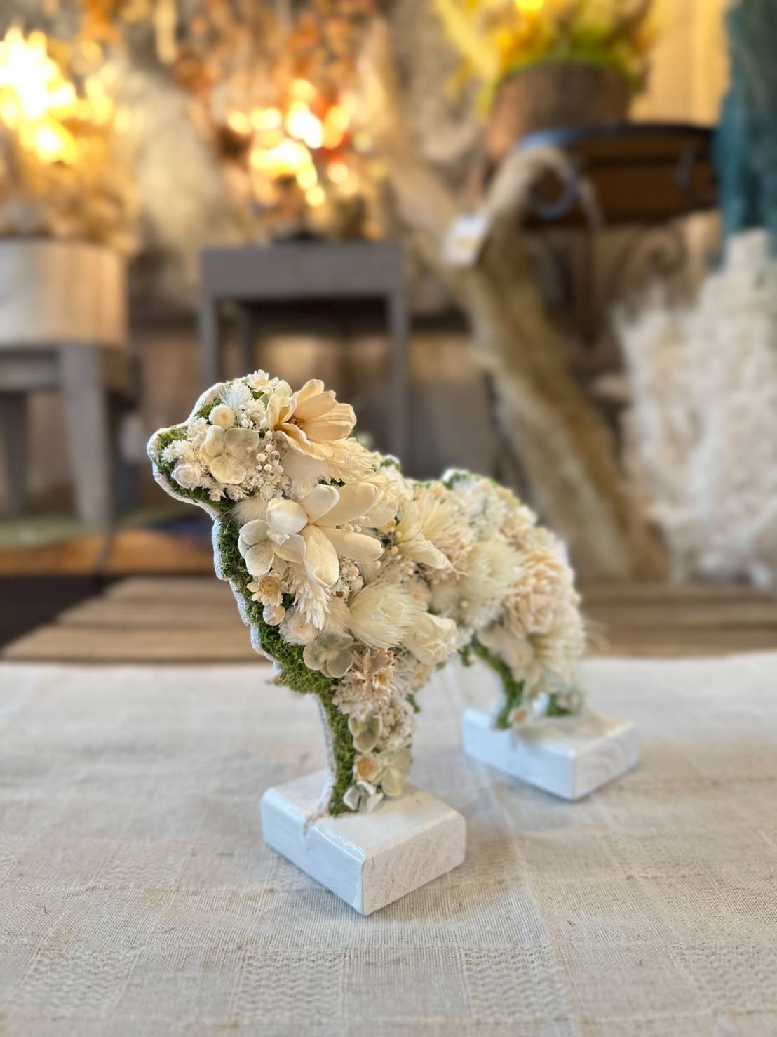 dry flowerで作ったポメラニアン、グレートピレニーズ、イタリアングレーハウンドの置き物になります.