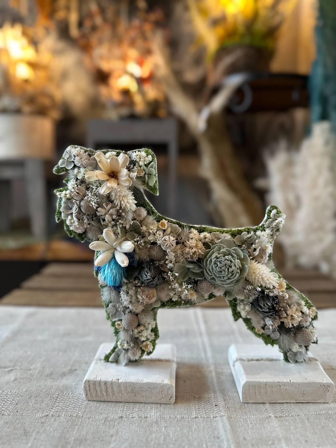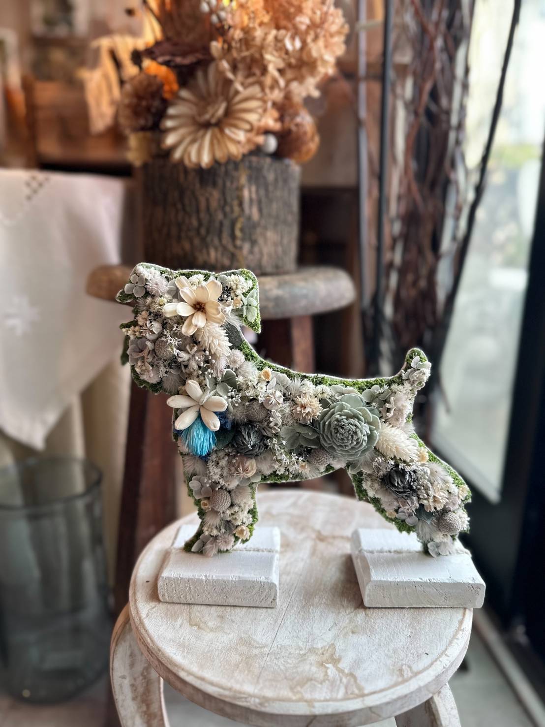 dry flowerで作ったシュナウザーの置き物になります.