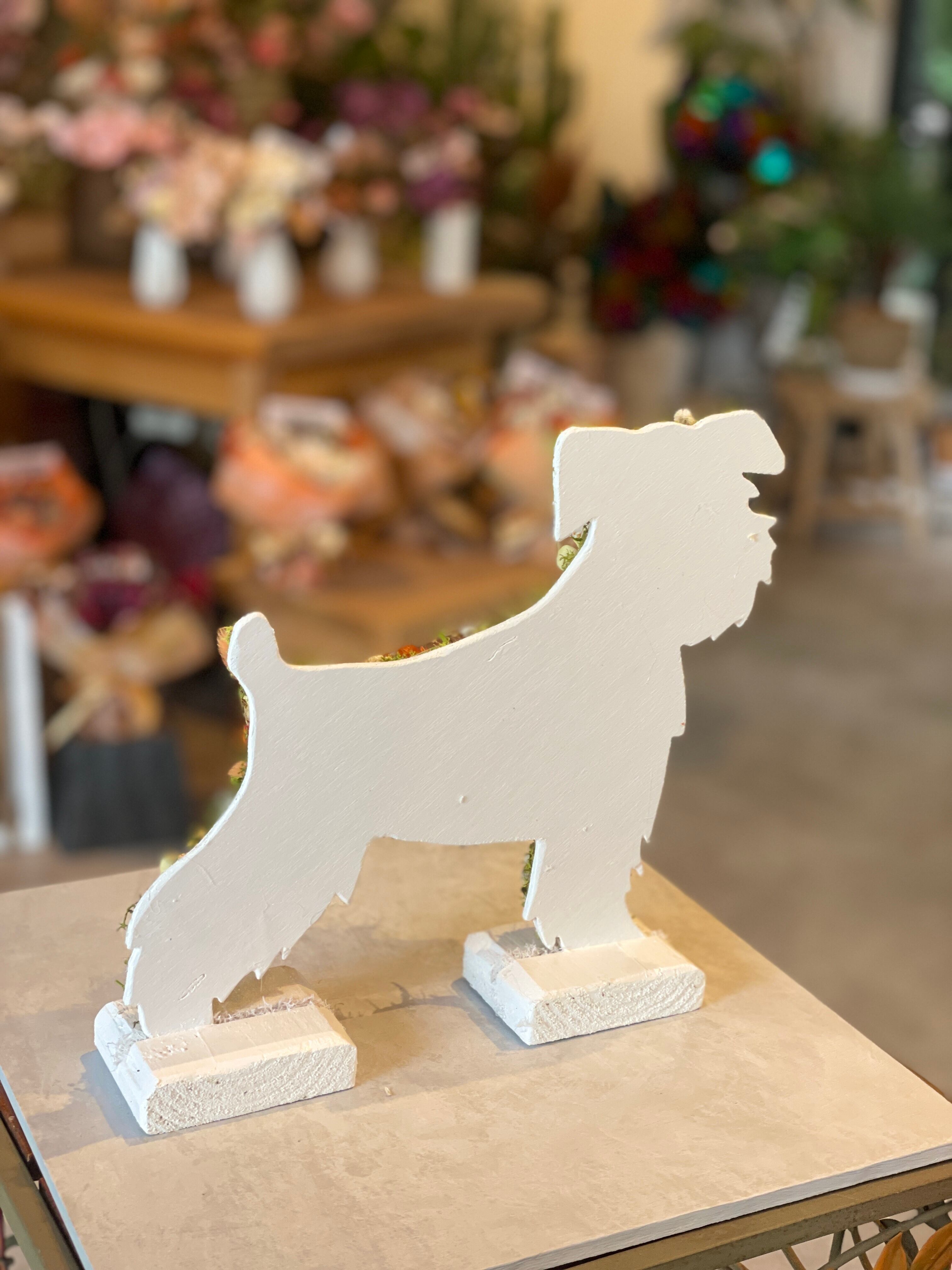 dry flowerで作ったミニチュアシュナウザーの置き物になります.