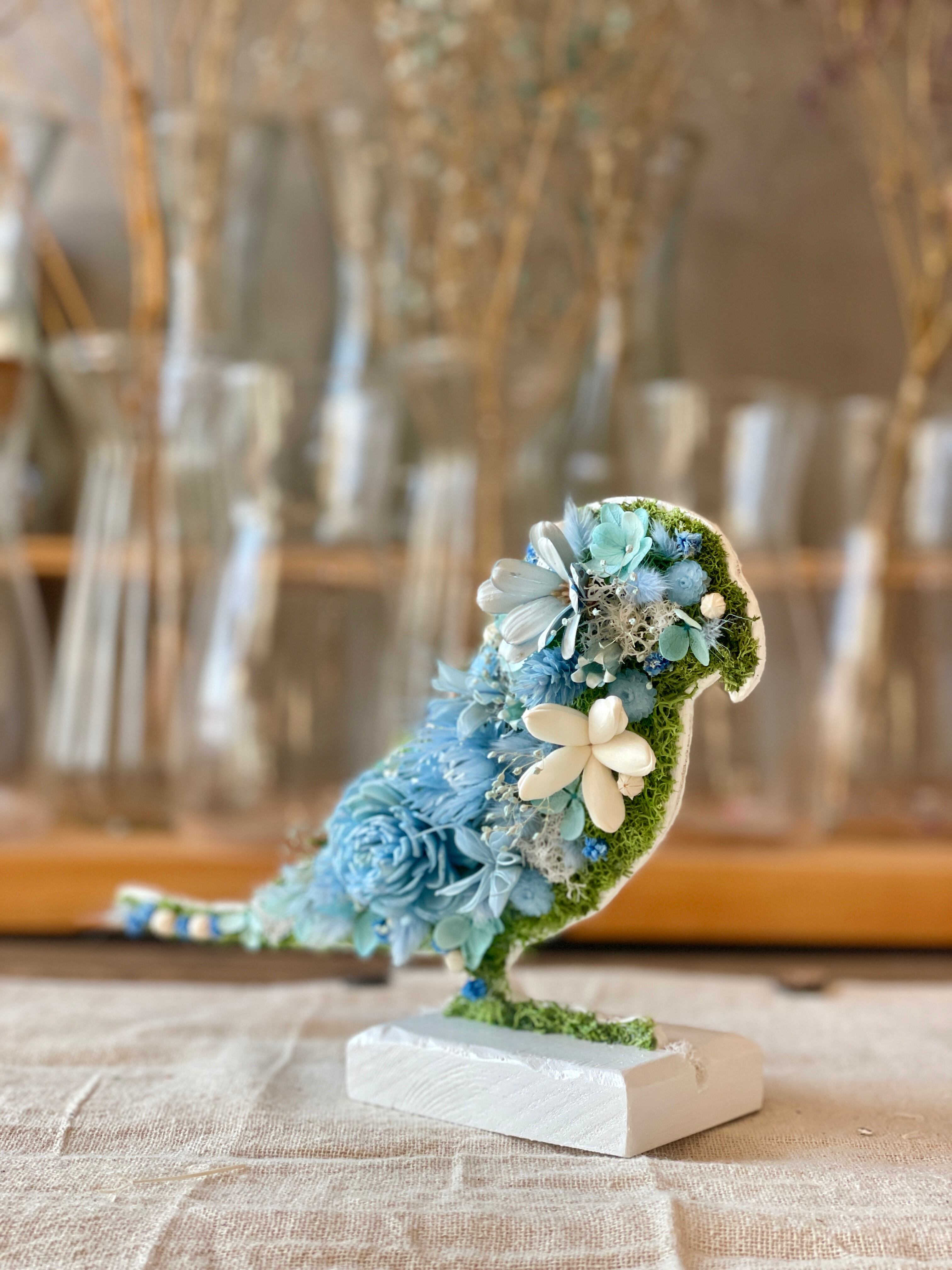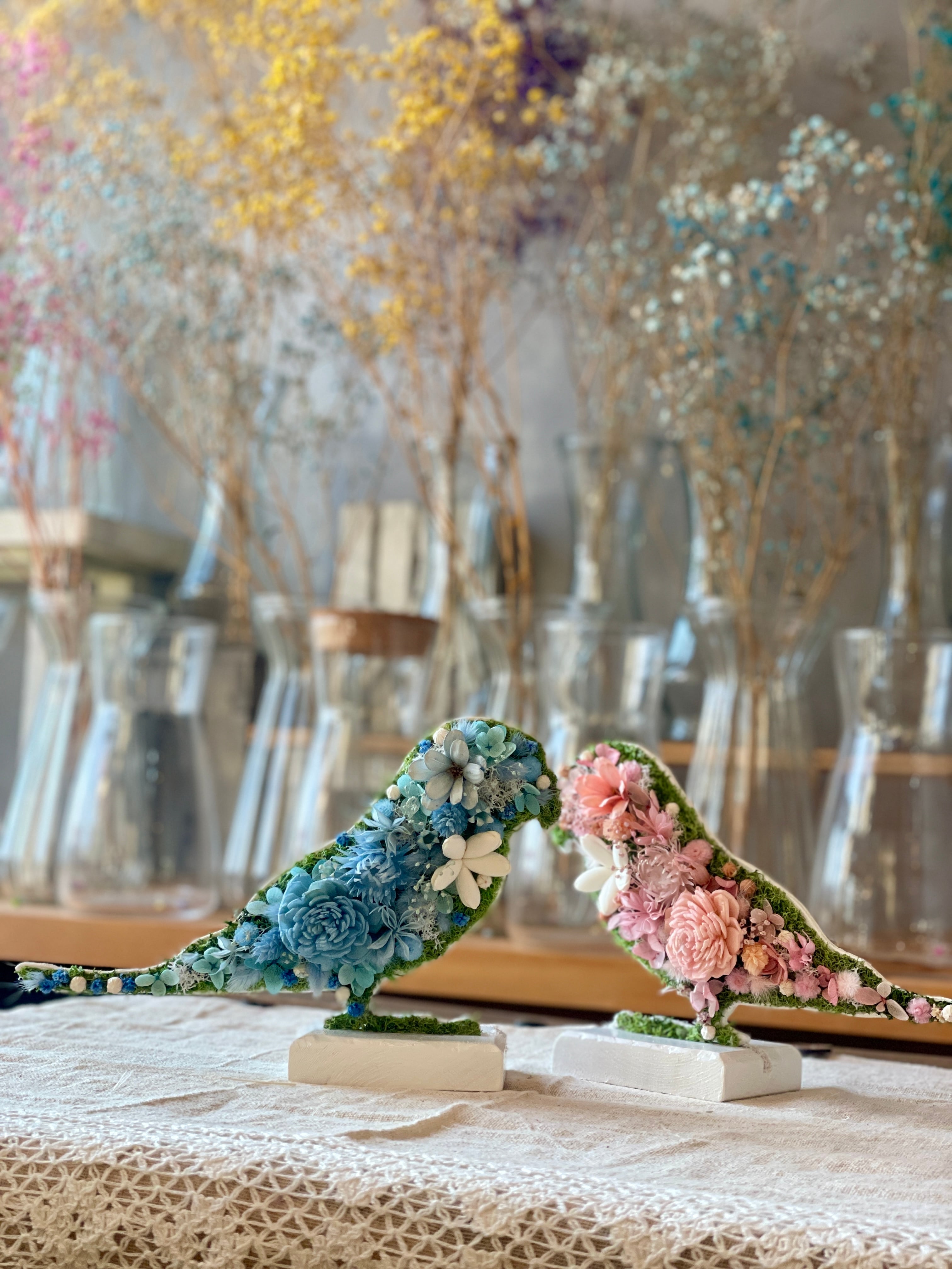 dry flowerで作ったインコの向き合わせの置き物になります.