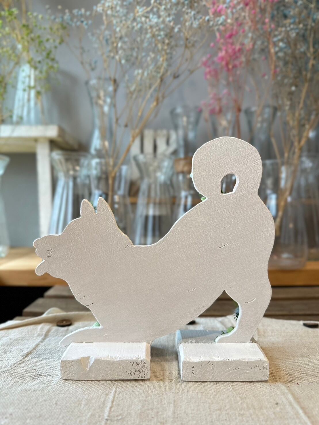 dry flowerで作った柴犬とシュナウザーの向き合わせの置き物になります.
