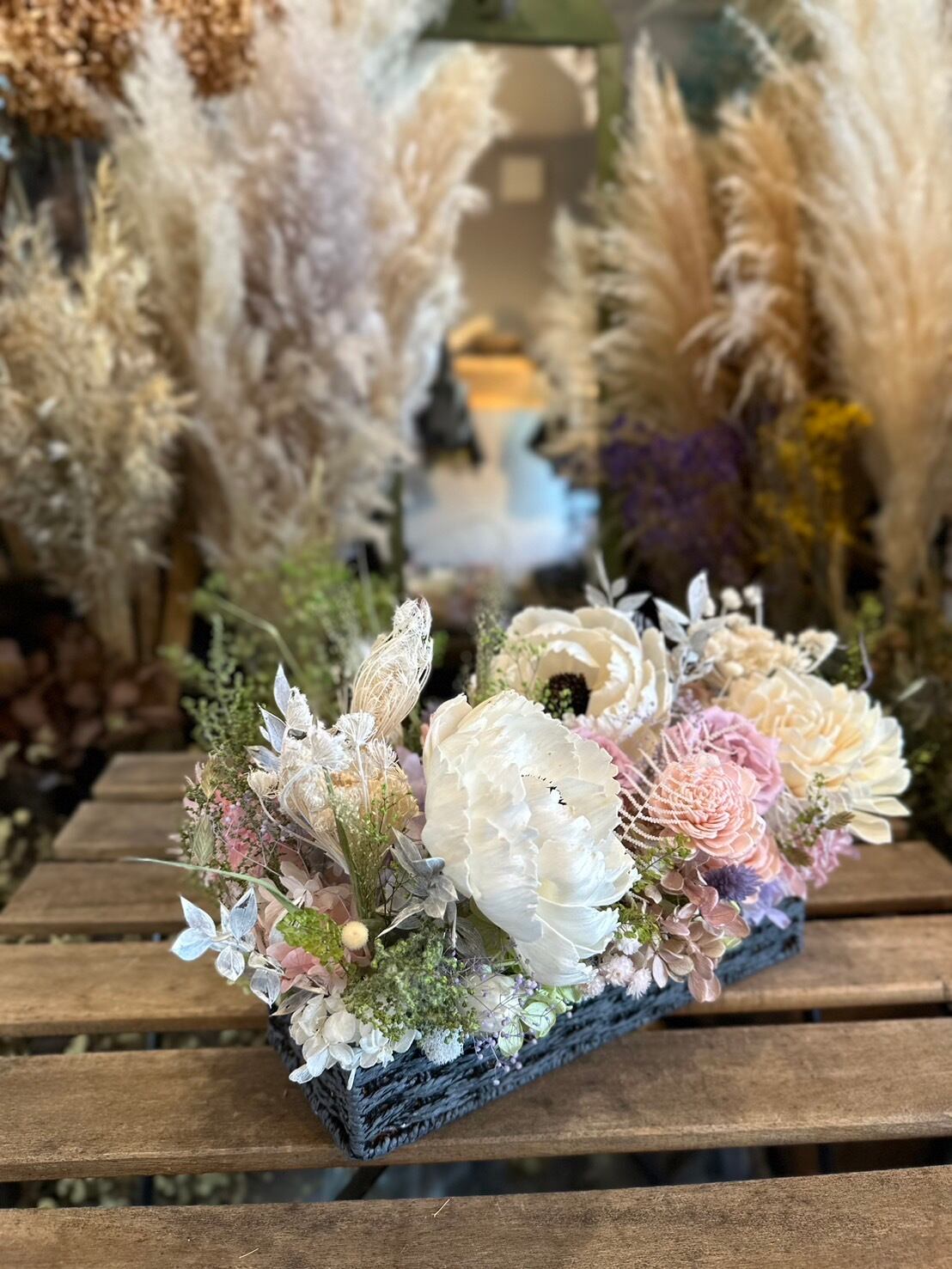 dry flowerで作った置き型のフラワーアレンジメントになります.