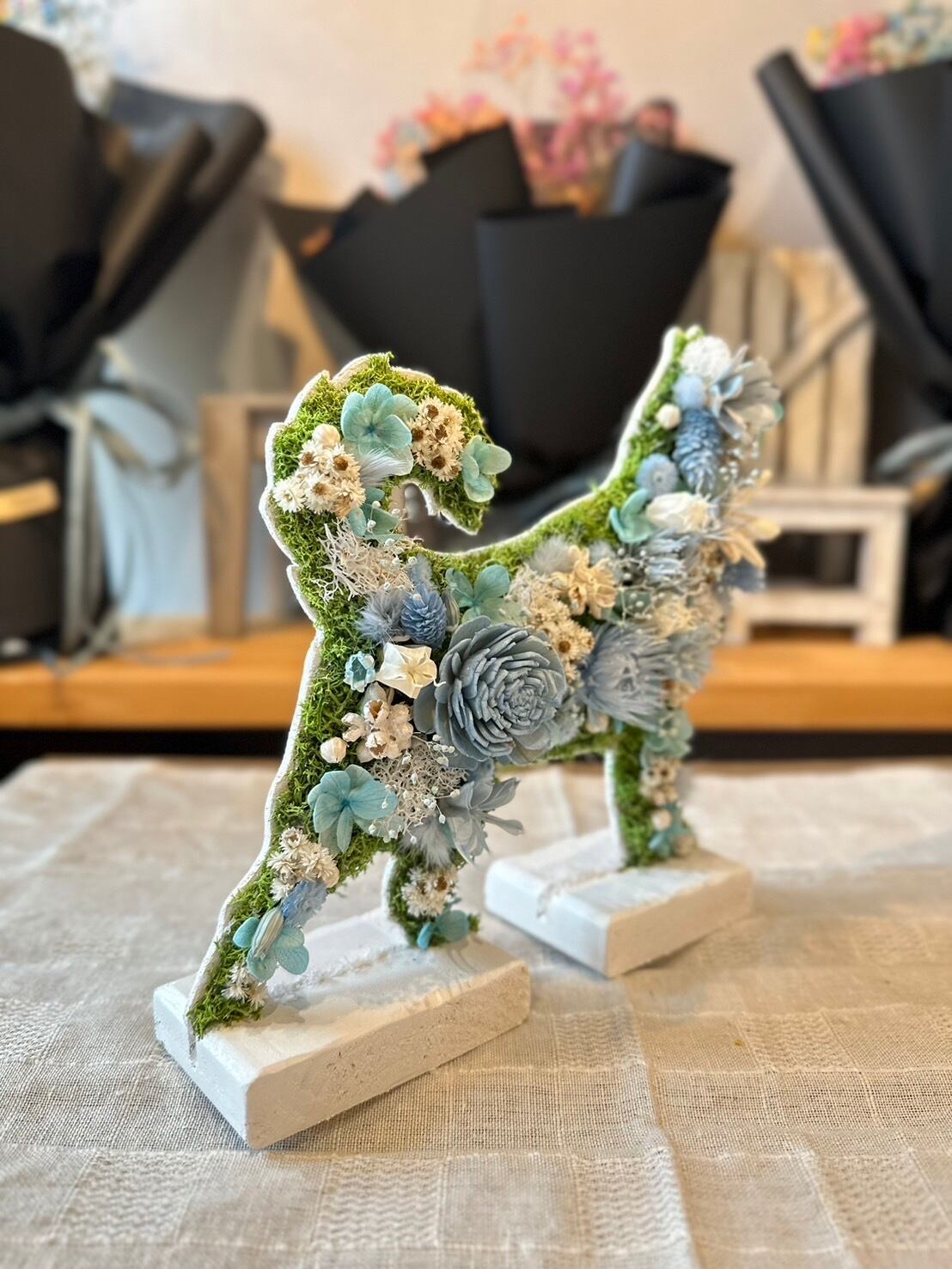 dry flowerで作ったアラスカンマラミュートの置き物になります.