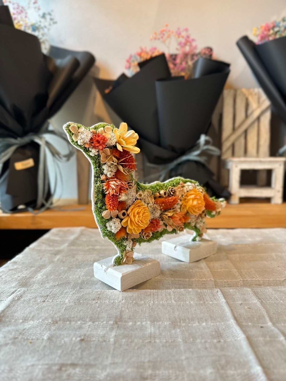 dry flowerで作ったダックスフンドの置き物になります.