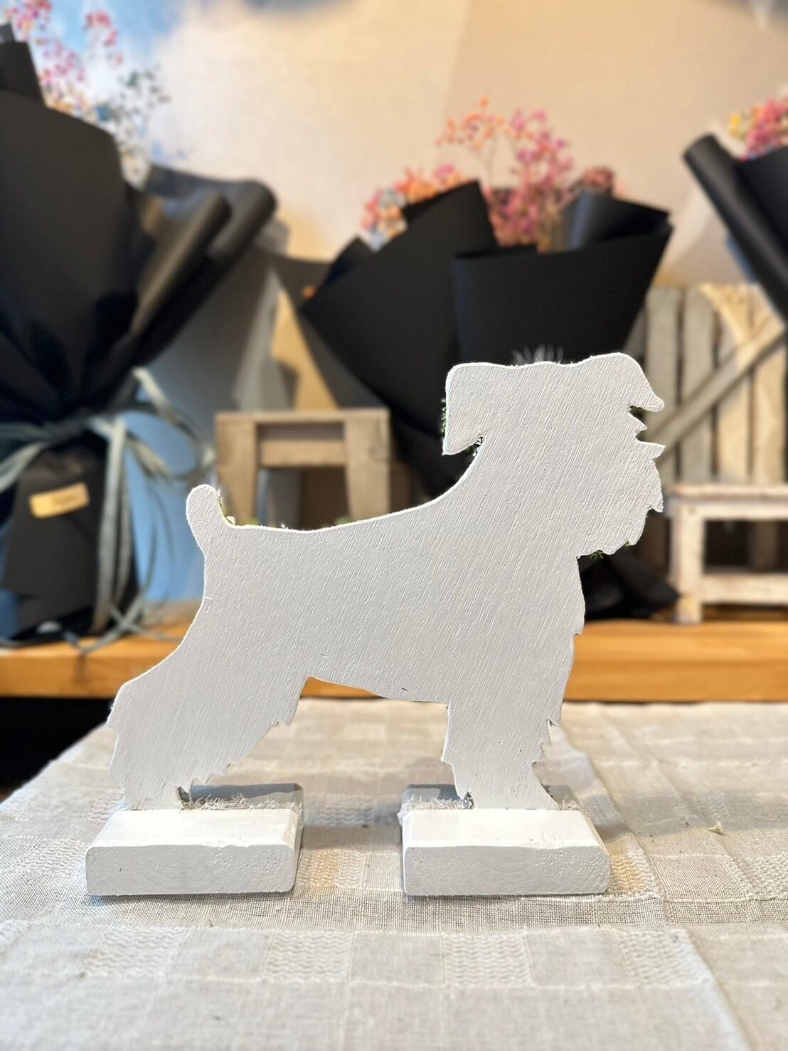 dry flowerで作ったミニチュアシュナウザーの置き物になります.