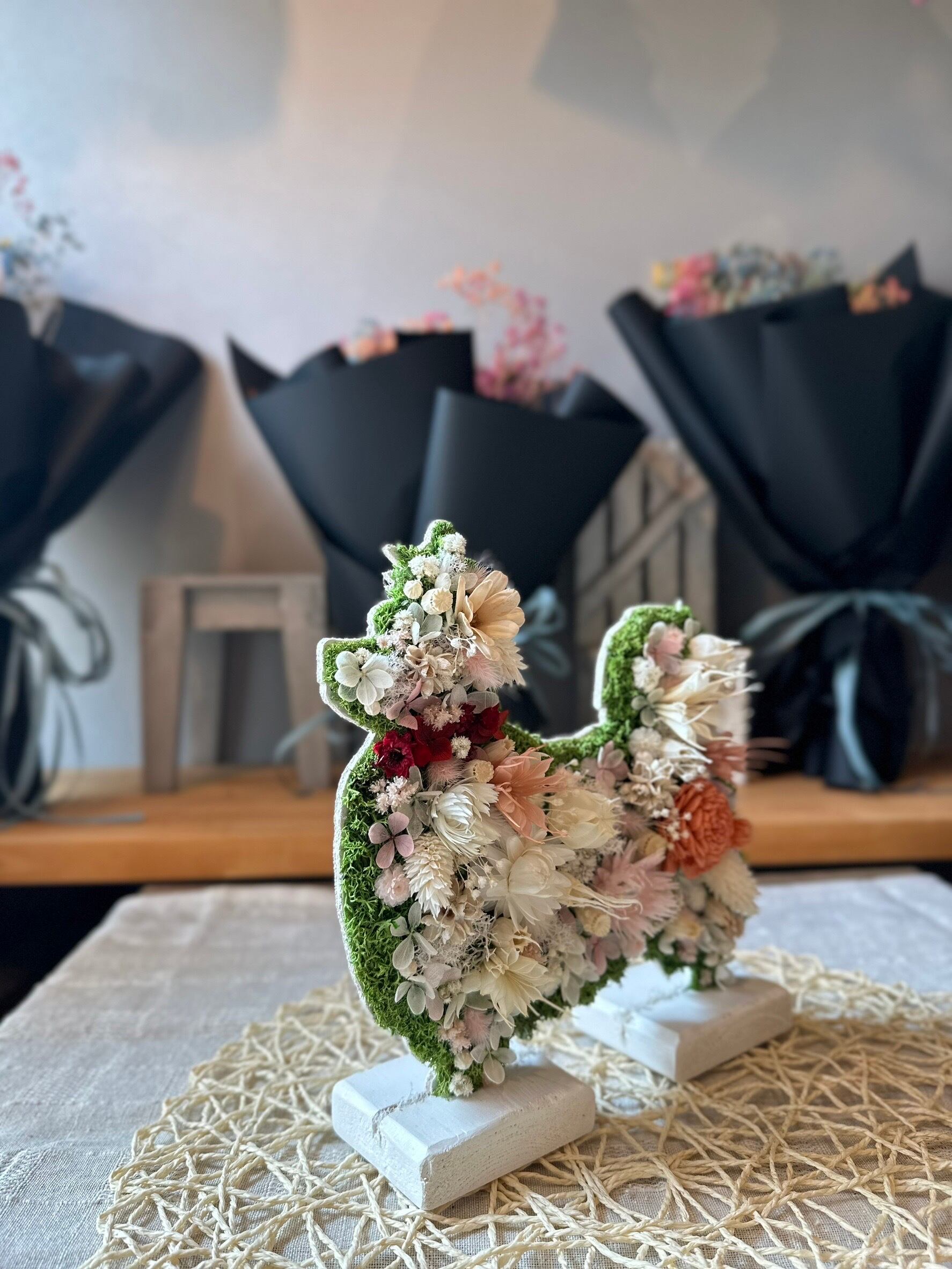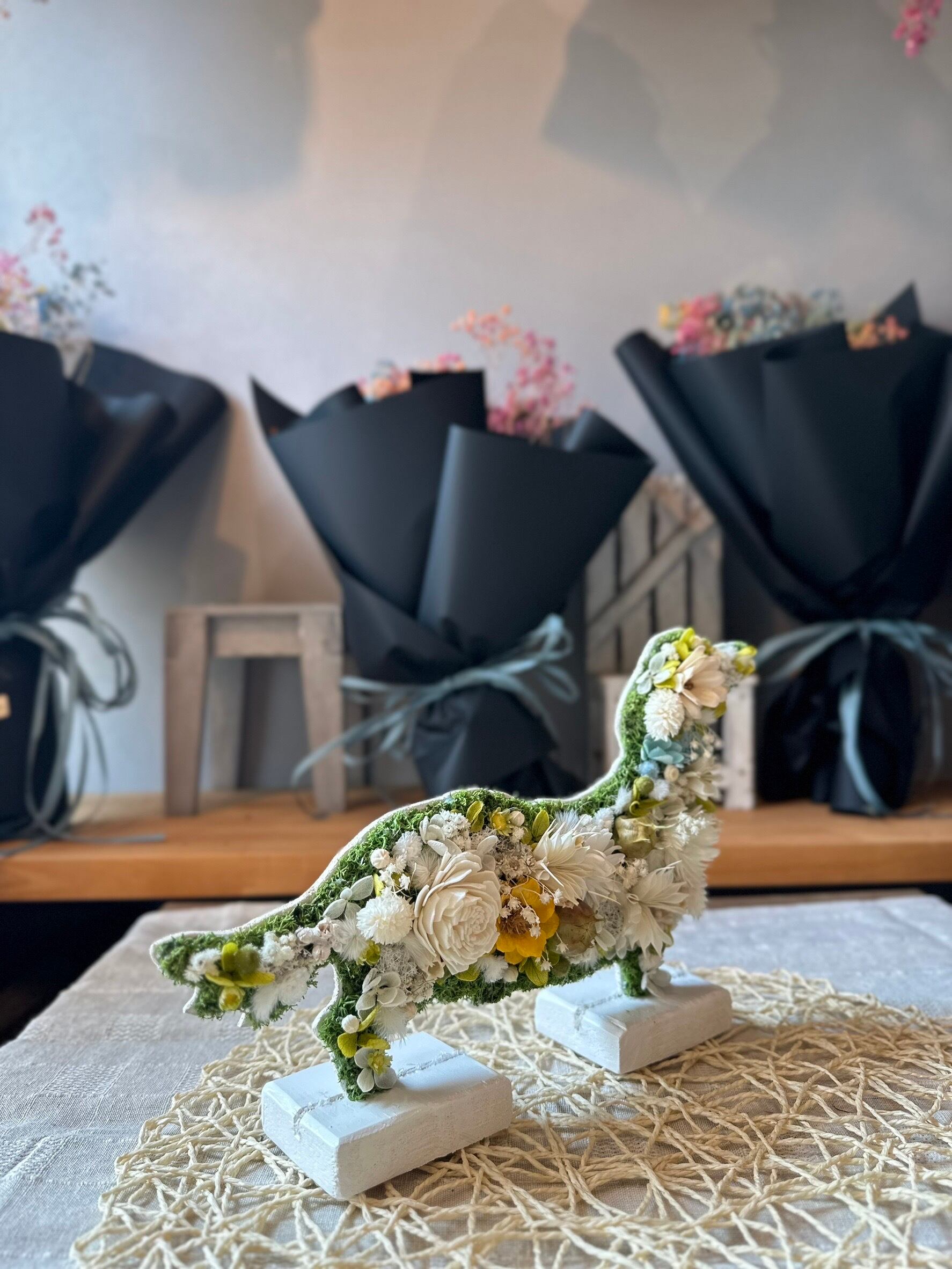 dry flowerで作ったダックスフンドとパピヨンの置き物になります.