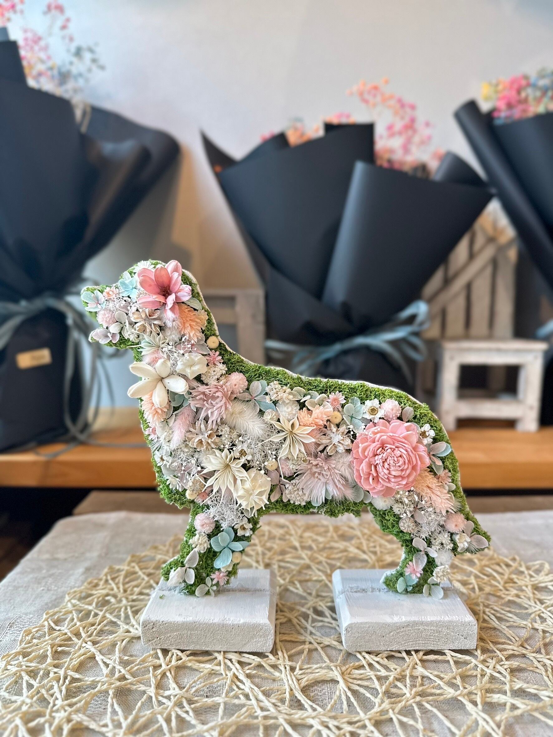 dry flowerで作ったゴールデンレトリバー置き物になります.