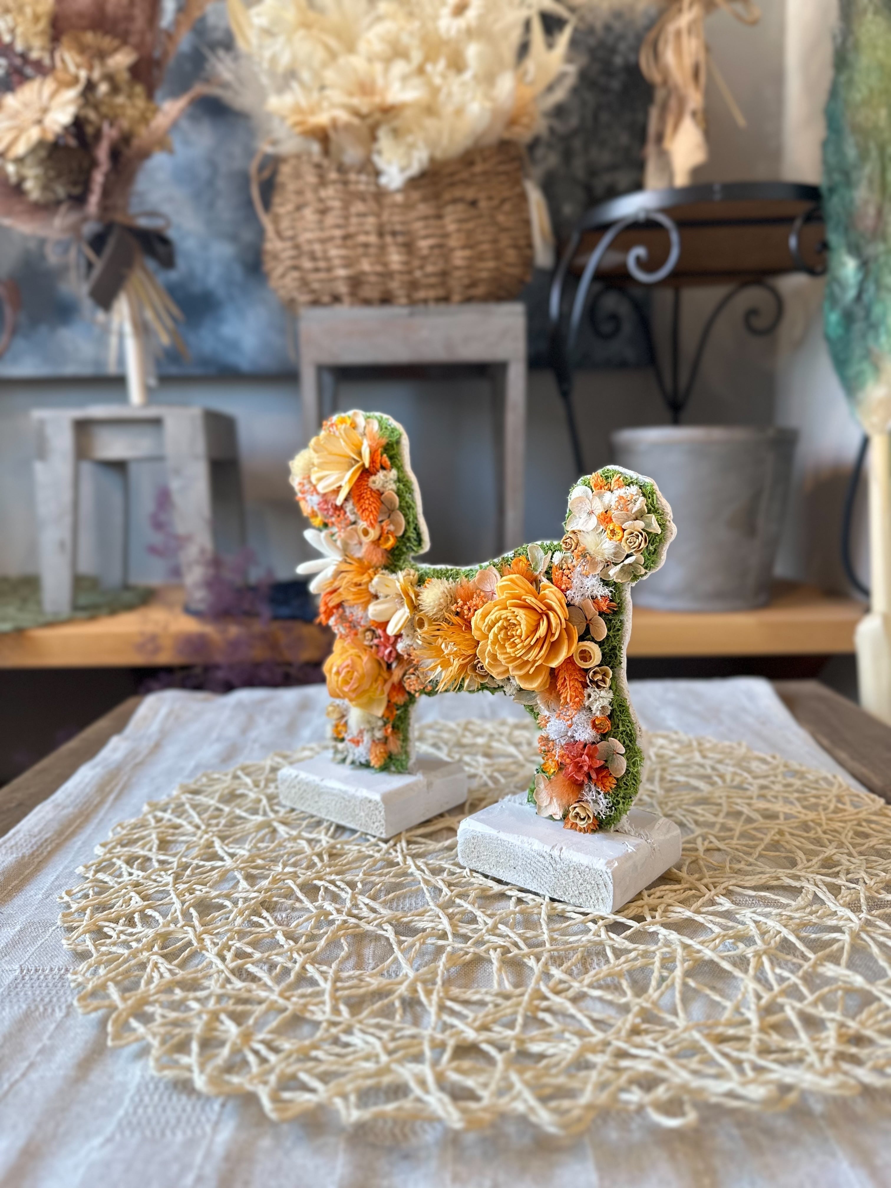 dry flowerで作ったトイプードルの置き物になります.