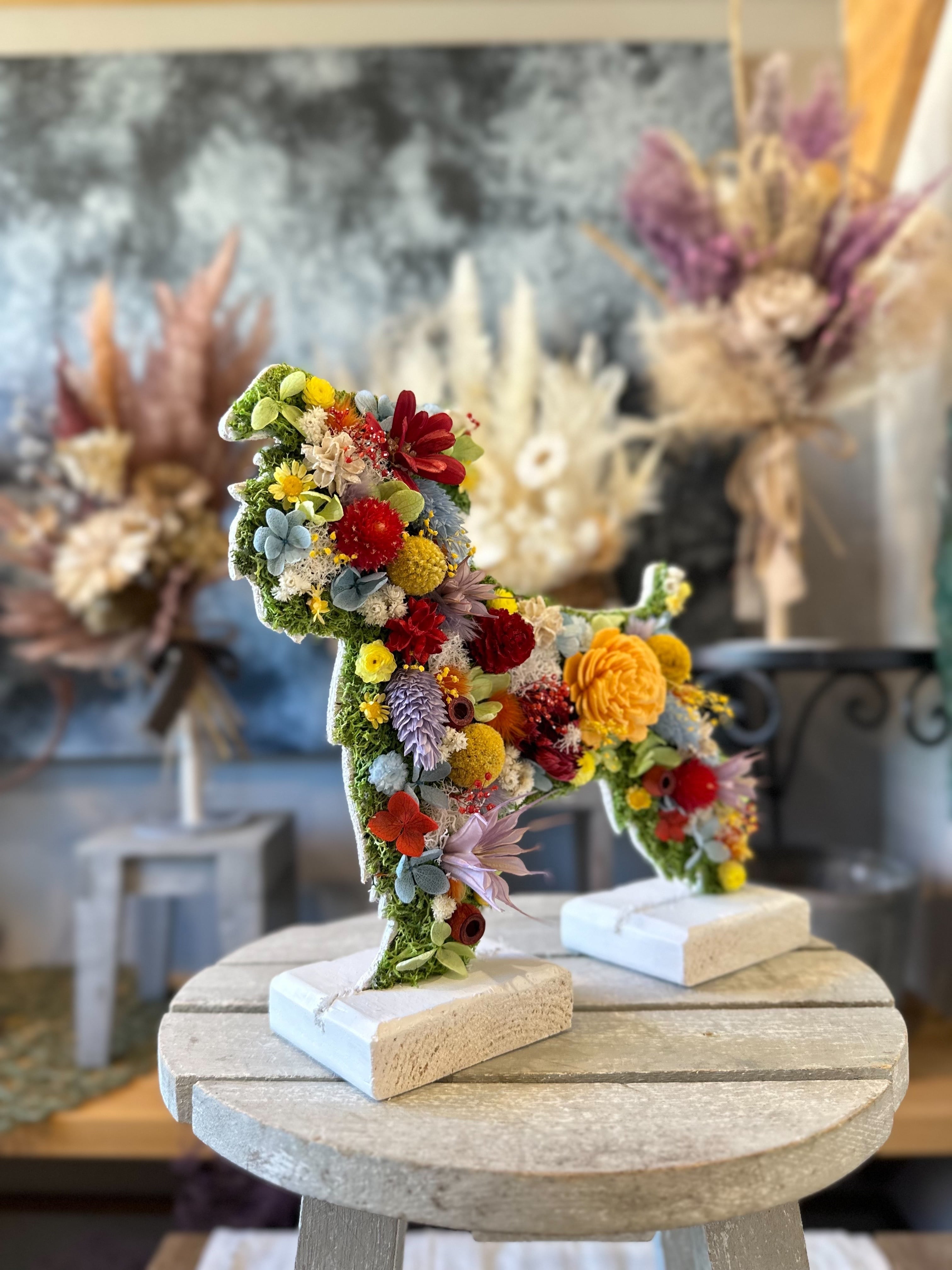 dry flowerで作ったシュナウザーの置き物になります.