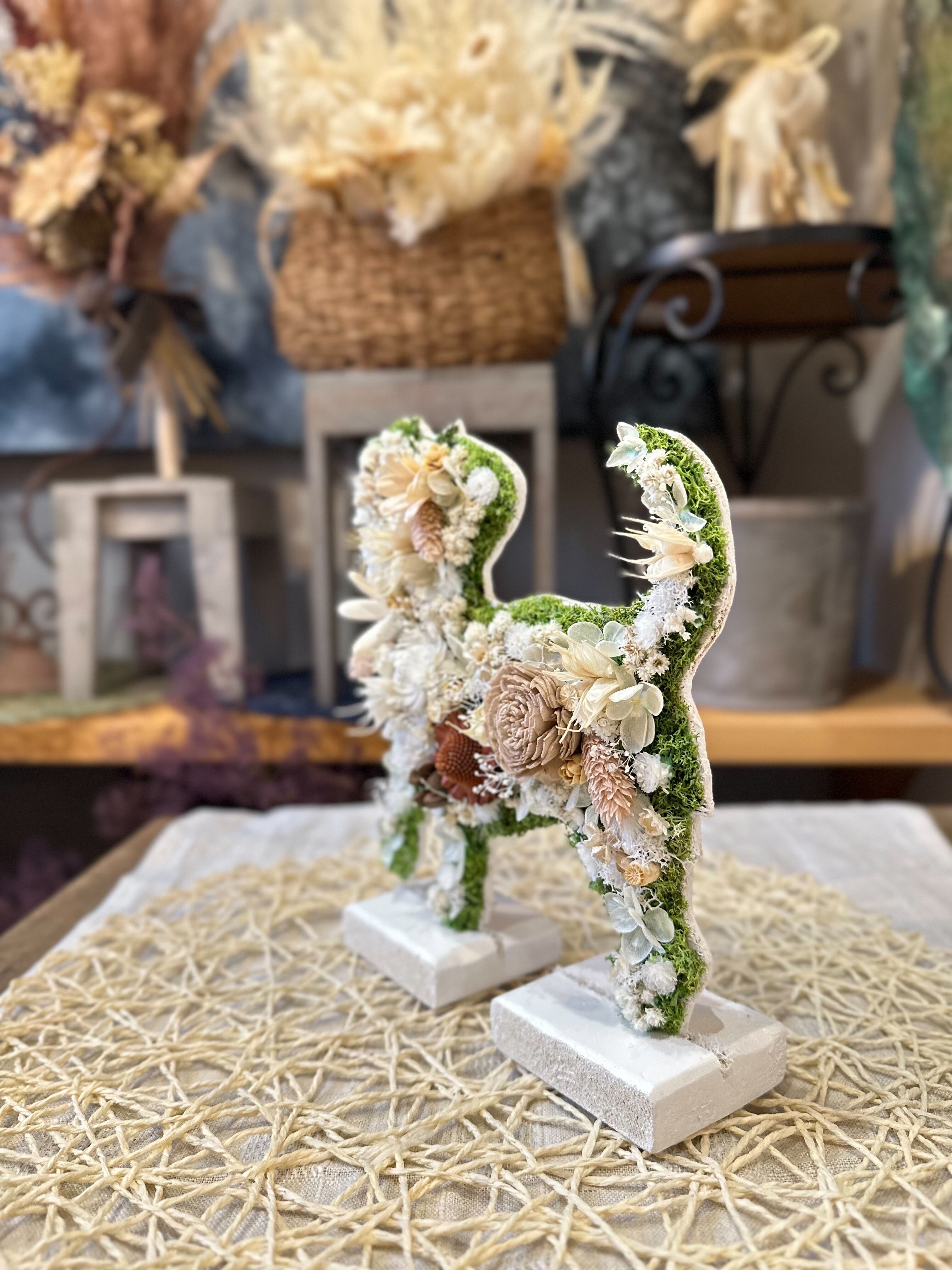 dry flowerで作ったジャックラッセルテリアミックスの置き物になります.